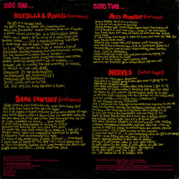 The trio set about kicking up a storm, touring up north on the famous Looney Tour of 1984 and recording the Double B-side seven inch while they were in Auckland.
